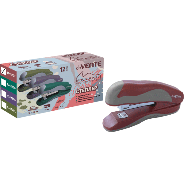 Степлер "deVENTE. Marandi" № 10 (мощность 12 листов, глубина скрепления 45 мм) пластиковый с каучуковой вставкой, в картонной коробке, пыльная роза