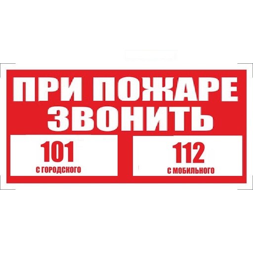 Табличка "ПРИ ПОЖАРЕ ЗВОНИТЬ 01 с городского,112 с мобил." самокл. 20*10см