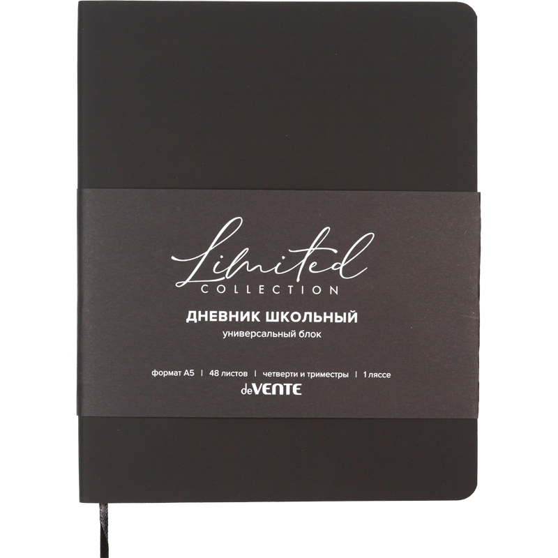 Дневник "deVENTE. Nobile" универсальный блок, 48 листов, белая бумага 80 г/м², печать в 1 краску, мягкая обложка из искусственной кожи soft touch, 1 ляссе, черный