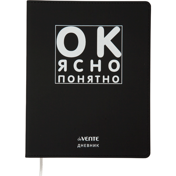 Дневник "deVENTE. Ок, ясно, понятно" универсальный блок, 48 листов, белая бумага 80 г/м², печать в 1 краску, гибкая обложка из искусственной кожи, шелкография, отстрочка, 1 ляссе
