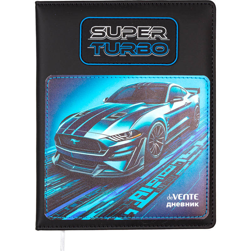Дневник "deVENTE. Super Turbo" универсальный блок, 48 листов, белая бумага 80 г/м², печать в 1 краску, твердая обложка из искусственной кожи с поролоном, аппликация из искусственной кожи, цветная печать, цветная объемная аппликация rubber patch, отстрочка, 1 ляссе