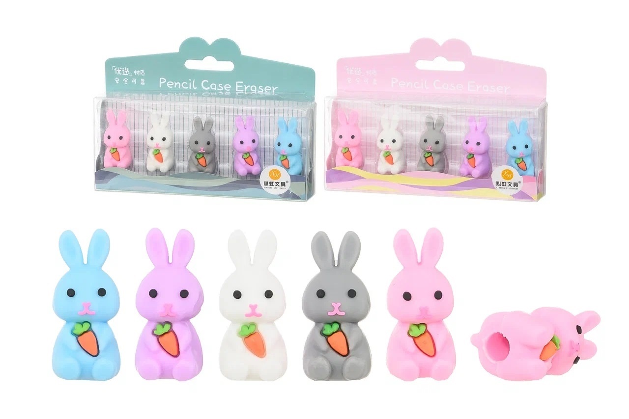 Ластик-насадка для карандашей и ручек "ЗАЯЦ"; НАБОР 5шт размер 2,9*2,8 см, в пласт.упак