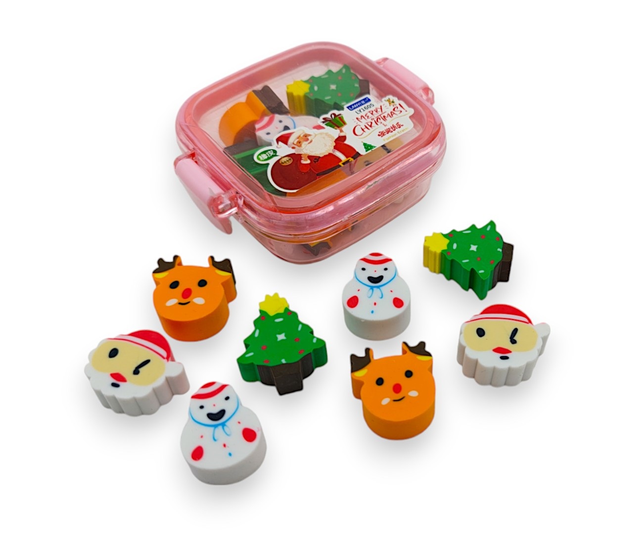 Ластик новогодний НАБОР 8шт в пластиковом контейнере