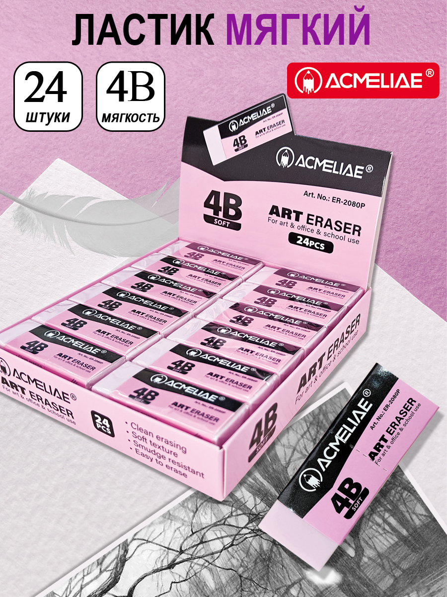 Ластик художественный мягкий 4В Acmeliae 21x56x12мм светло-розовы
