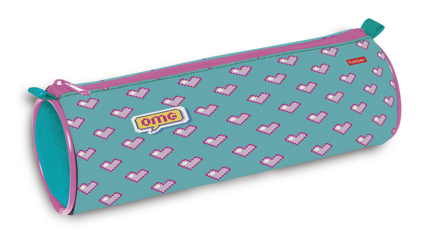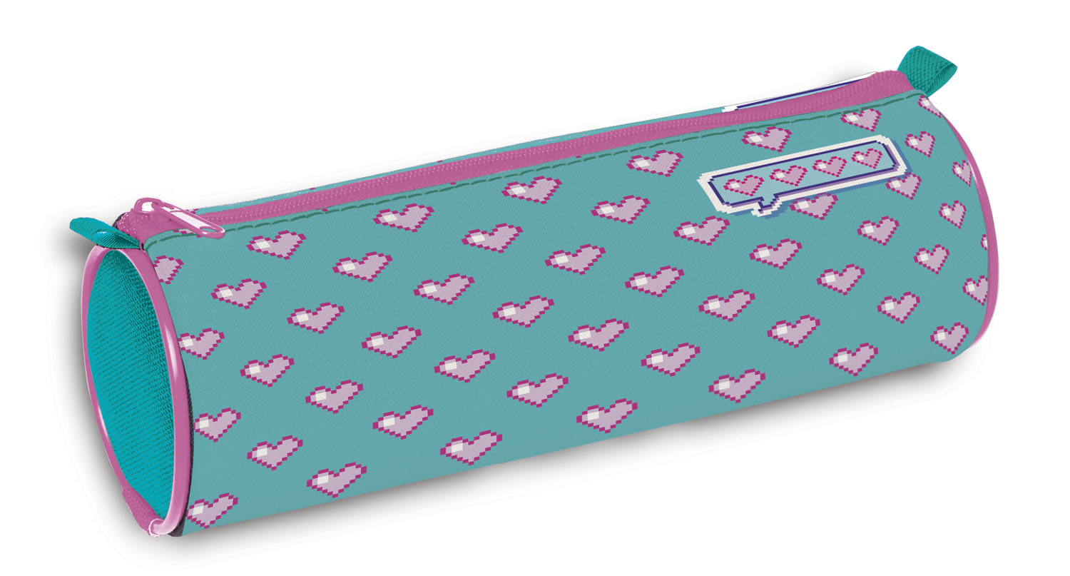 Пенал-Тубус Hatber 210х70мм на молнии -Пиксель_Сердечки- в индив.упак.