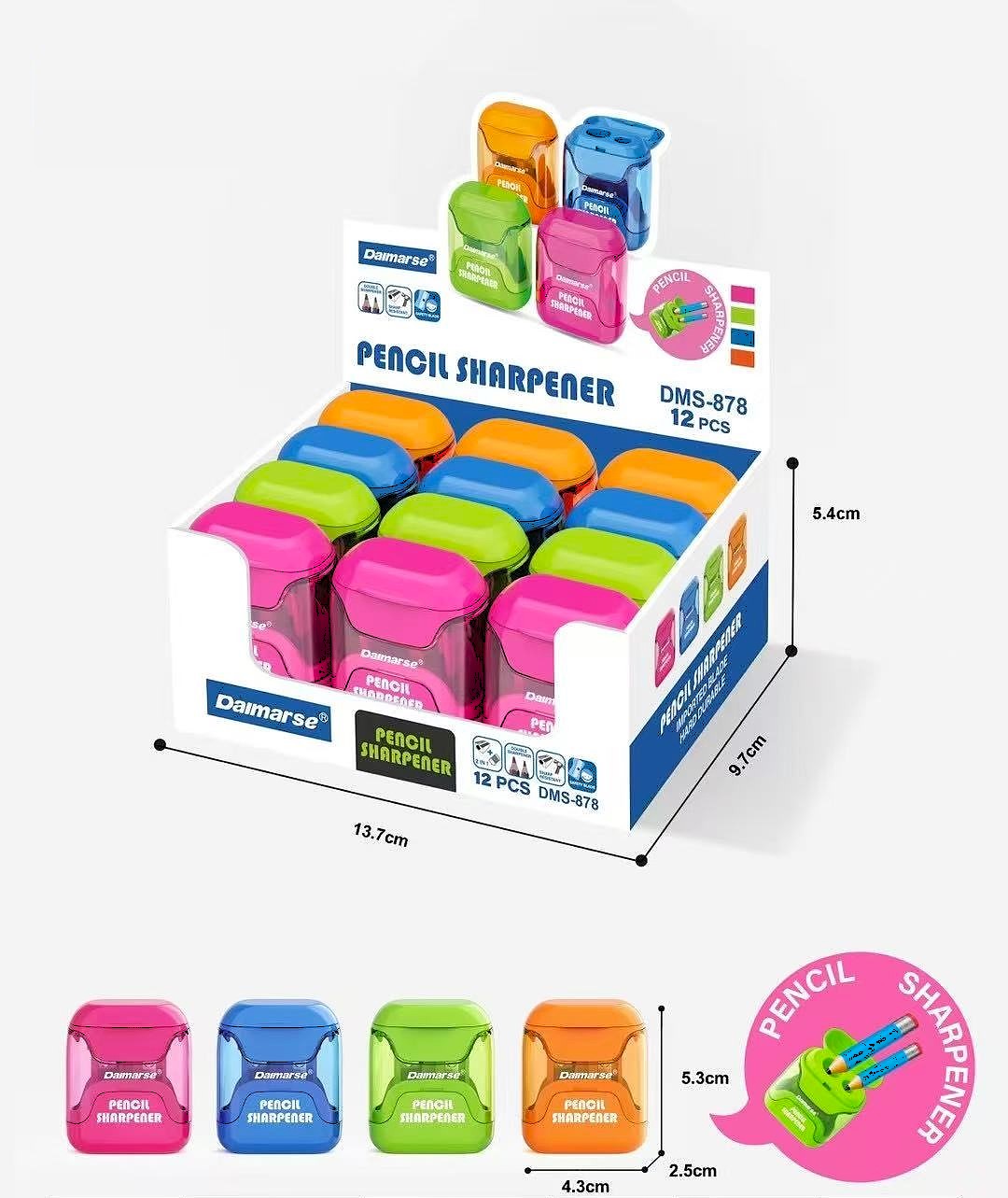 Точилка двойная DMS с контейнером, с крышкой, 4цв. ассорти, 4,3*5,3*2,5см