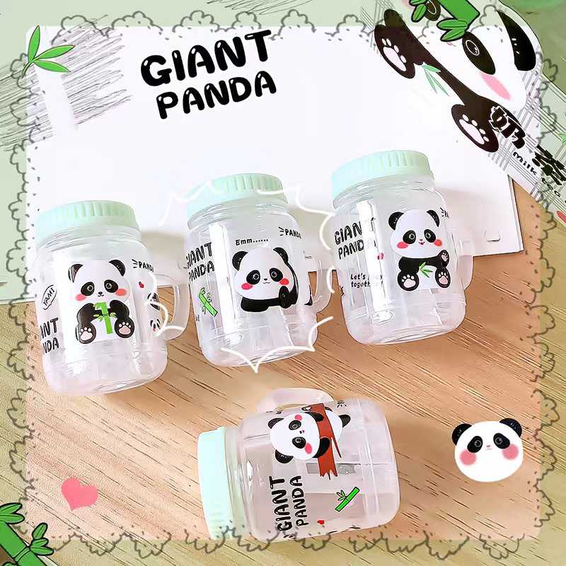 Точилка ПАНДА с контейнером, в форме баночки с ручкой и крышкой.
