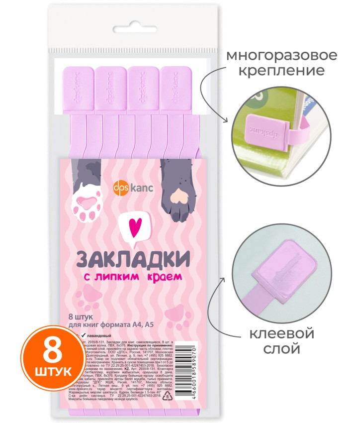 Закладка-ляссе мягкая пластиковая для книг и учебных пособий. Основание закладки имеет липкую сторону, с которой необходимо снять защитную бумагу, затем приклеить на заднюю часть обложки книги, учебника или тетради и плотно прижать. Длина 38 см подходит для рабочих тетрадей А4 формата, если нужно короче, просто отрежьте ножницами под нужную высоту. Закладка надежно фиксируется при этом не оставляет липкого слоя при переклеивании, не рвет страницы, не утяжеляет. Размер 1 штуки - 10х376 мм. Материал - ПВХ. Плотность - 300 мкм.