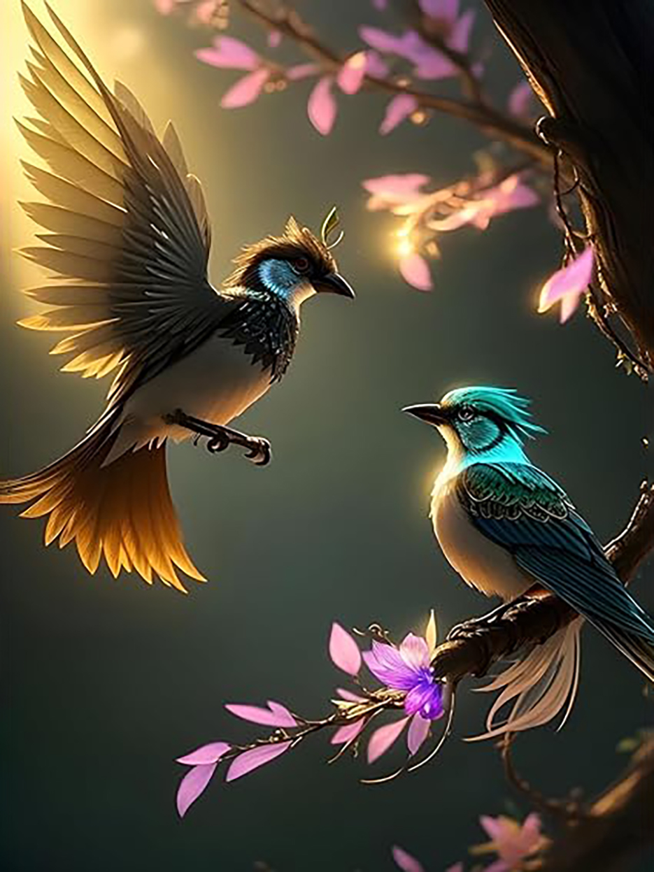 Алмазная мозаика 40х50 Птички на подрамнике, полное заполнение