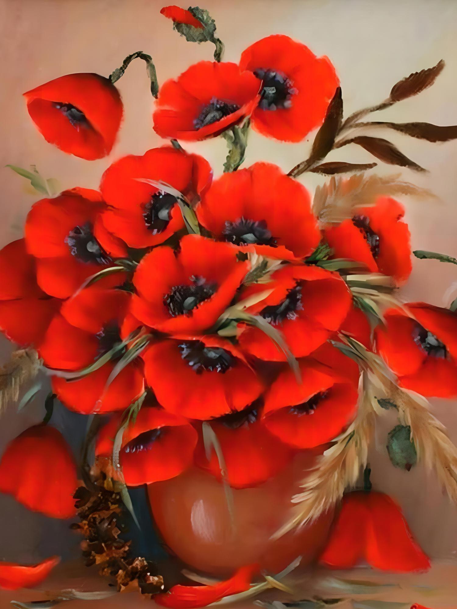 Алмазная мозаика 40х50 Маки на подрамнике, полное заполнение