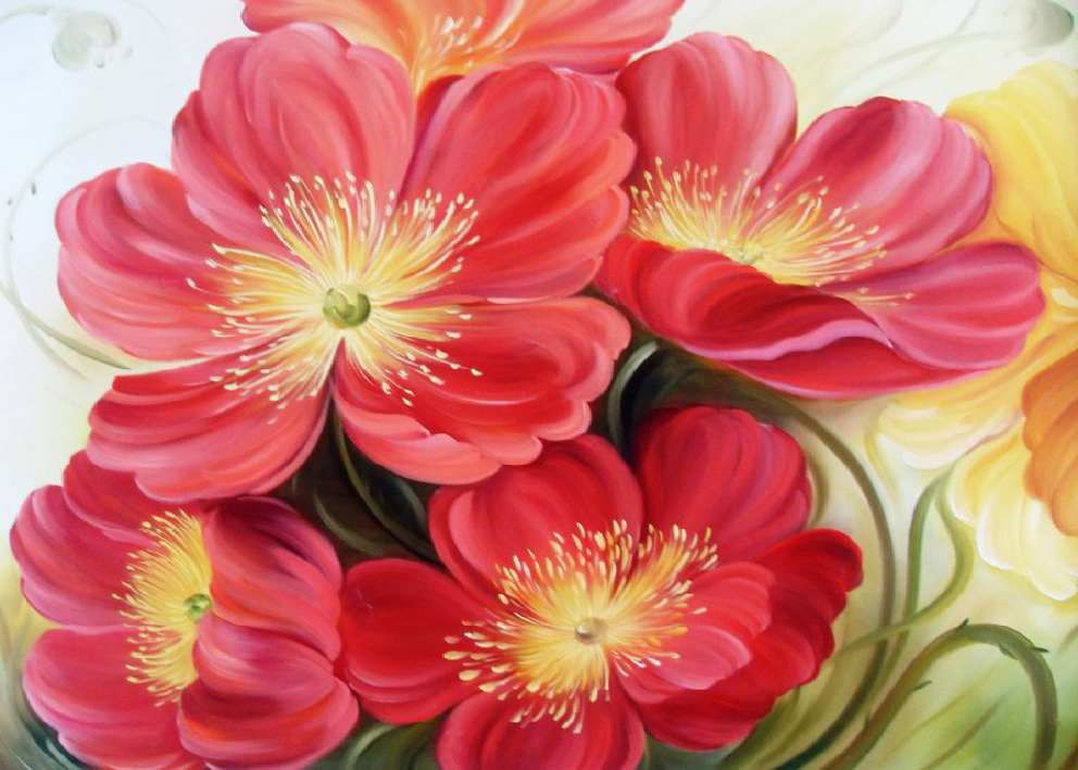 Алмазная мозаика 30х40 Цветы на подрамнике, полное заполнение