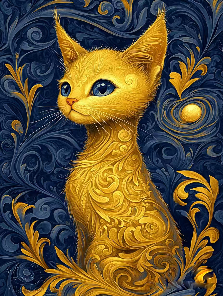 Алмазная мозаика 30х40 Кошка на подрамнике, полное заполнение