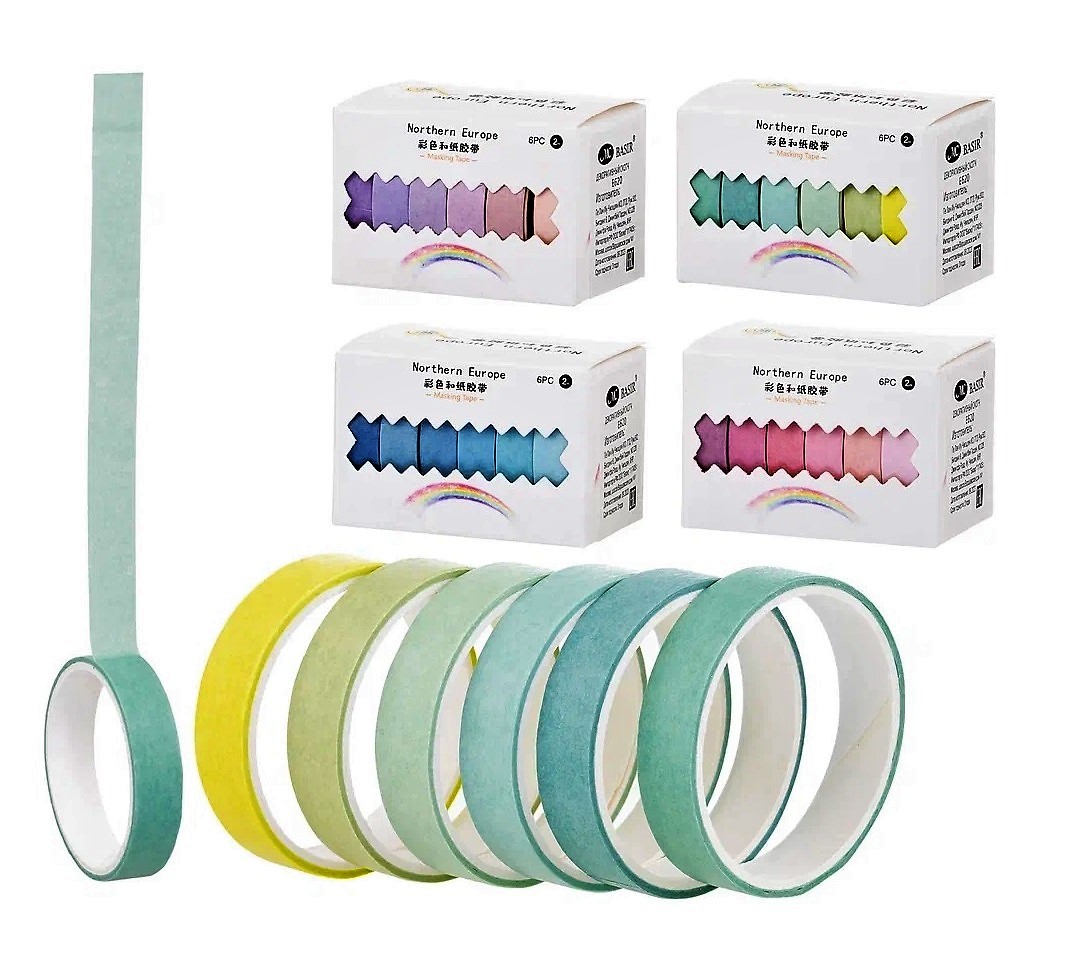 Клейкая лента декоративная ГРАДИЕНТ, НАБОР 6шт 15мм*2м. для творчества; бумажная, цветной /ассорти/