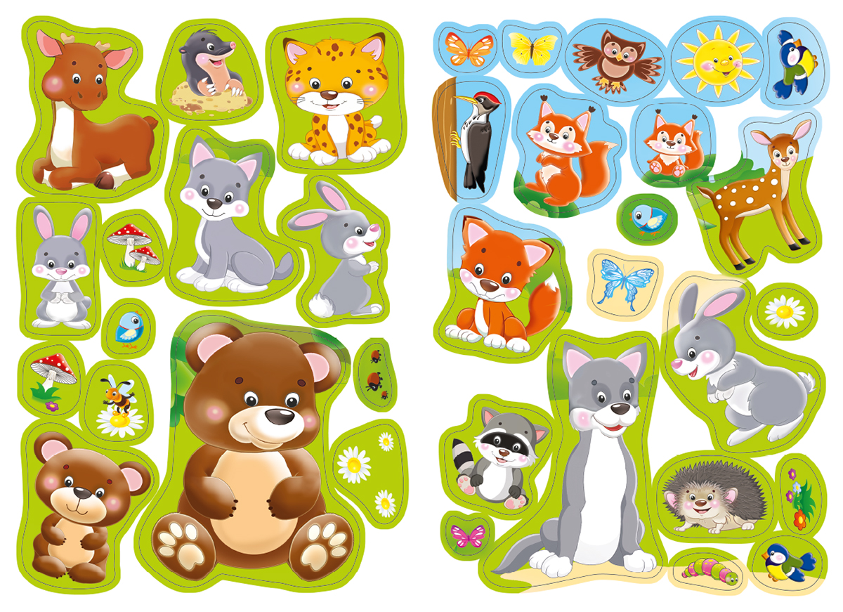 Многоразовые развивающие наклейки 16,2*23,5см 12стр "Лесные звери