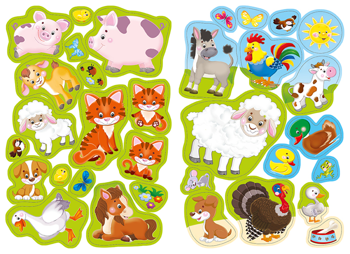 Многоразовые развивающие наклейки 16,2*23,5см 12стр "Домашние животные"