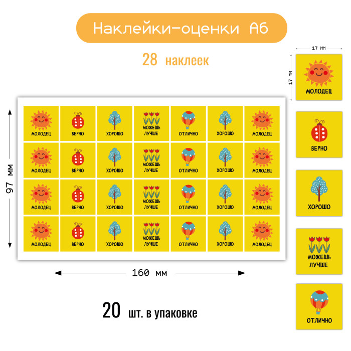 Наклейка А6 мини оценки солнышко