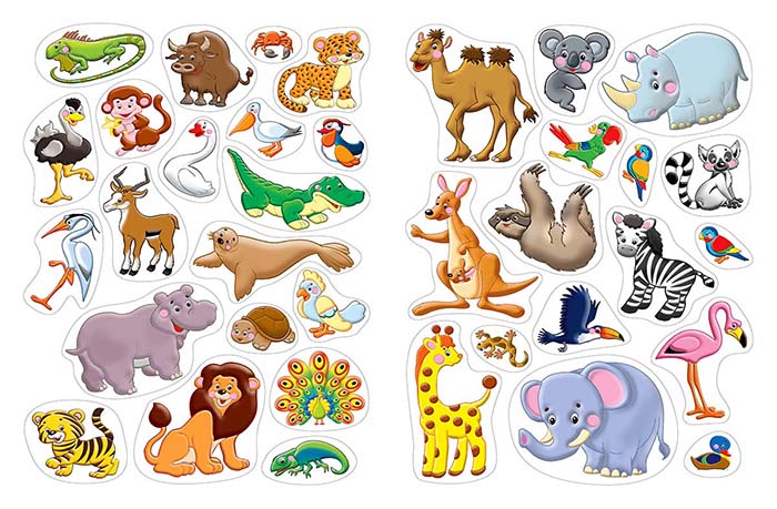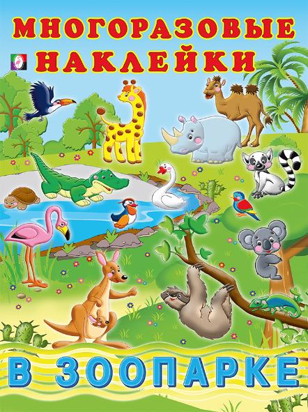 Многоразовые наклейки 21,5*28,5см 2 цв.стр.+ 2л. накл."В зоопарке