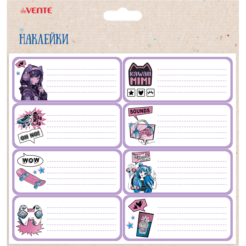 Набор наклеек для тетрадей "deVENTE. Kawaii Mimi" 40x96 мм, 8 шт, в пластиковом пакете с блистерным подвесом