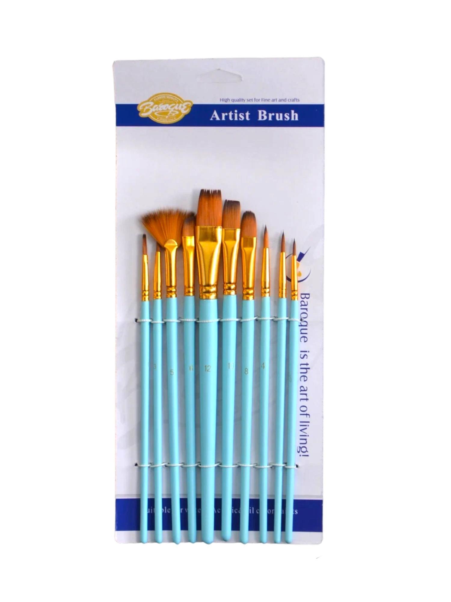 Набор кистей синтетика 10шт (круглые и плоские №1,2,20/0,3,4,5,6,8,10,12