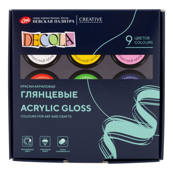 Краски акриловые "DECOLA" 9цв.,глянцевые,20мл.
