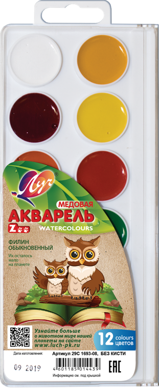 Краски акварельные «Zoo» медовые полусухие изготовлены на основе органических пигментов и натурального связующего с добавлением пчелиного мёда. Краски соответствуют европейским (знак CE). Краски акварельные «Zoo» в пластмассовой упаковке имеют увеличенные по объему кюветы с краской наиболее часто используемых цветов.
