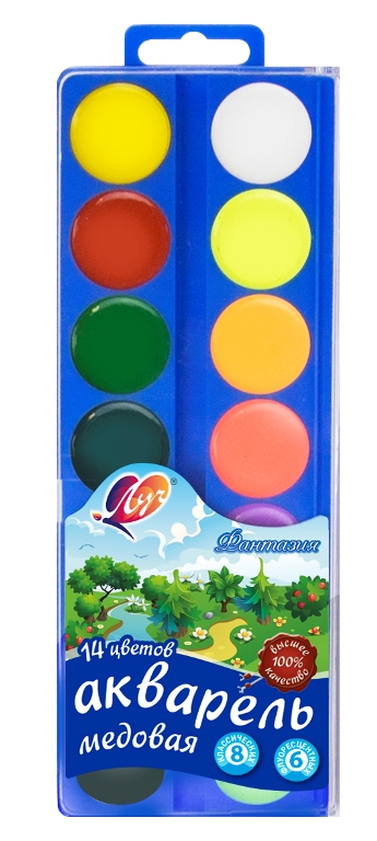 Краски акварельные ЛУЧ "Фантазия" 14цв (8классич.+6флюор)