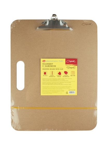 Планшет предназначен для крепления бумаги и оснащен удобной ручкой для переноски. Изготовлен из МДФ толщиной 5 мм. Планшет легкий, тонкий и прочный. Можно работать на весу, устанавливать на мольберт или этюдник. Идеален для живописи и графических работ на пленэре. Гладкая поверхность не повредит бумагу. Зажим и резинка надежно фиксируют лист, не оставляя заломов. Выдвижной подвес зажима позволяет разместить планшет на вертикальной поверхности.