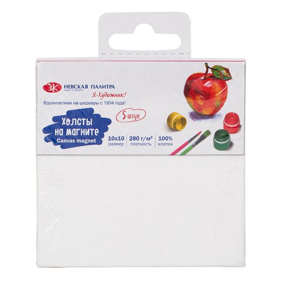Холсты на магните.10*10 см, 100%хлопок, 5 шт. Материал: 100% хлопок. Плотность: 280 г/м2. Грунт: акриловый. Цвет грунта: белый. Размер: 10*10 см